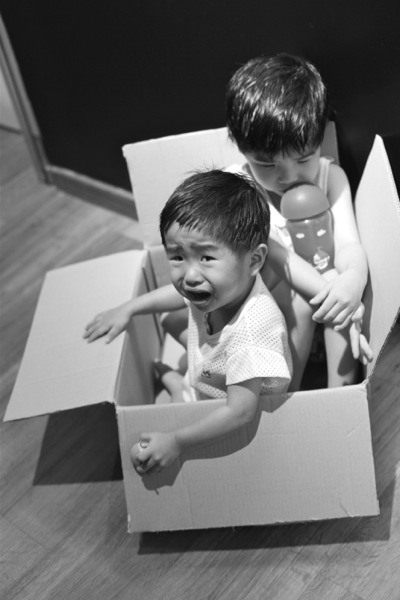 These days, fights with your brother are really common. You've learnt how to hold your own, protesting loudly if he tries to get in your way, but both of you also play very well together.